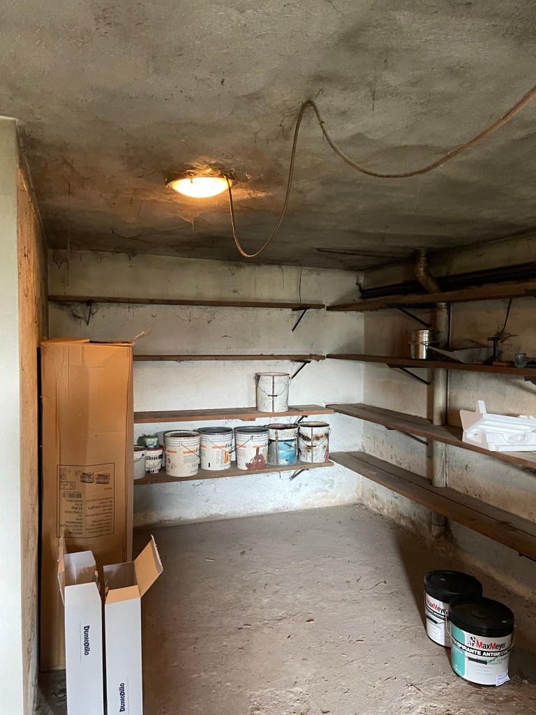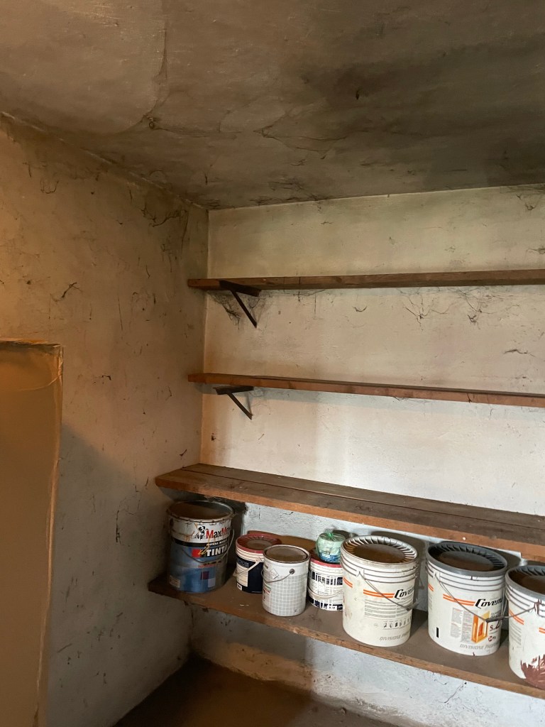 Vi skal på et tidspunkt, have gravet ude og støbt gulvet. Der skal bygges en ny dør og der skal vaskes ned og males.