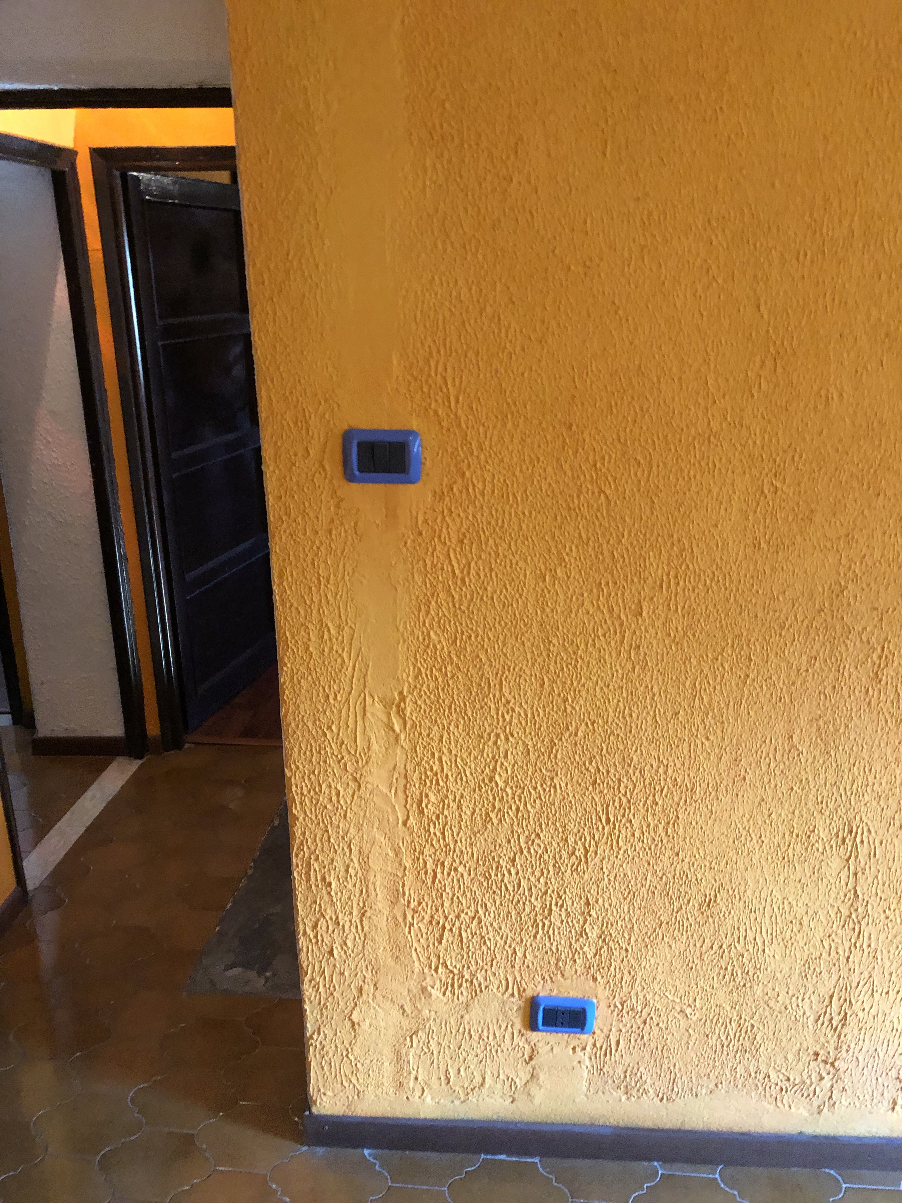 Ikke nok med at væggene er orange. Vi har også blå kontakter.