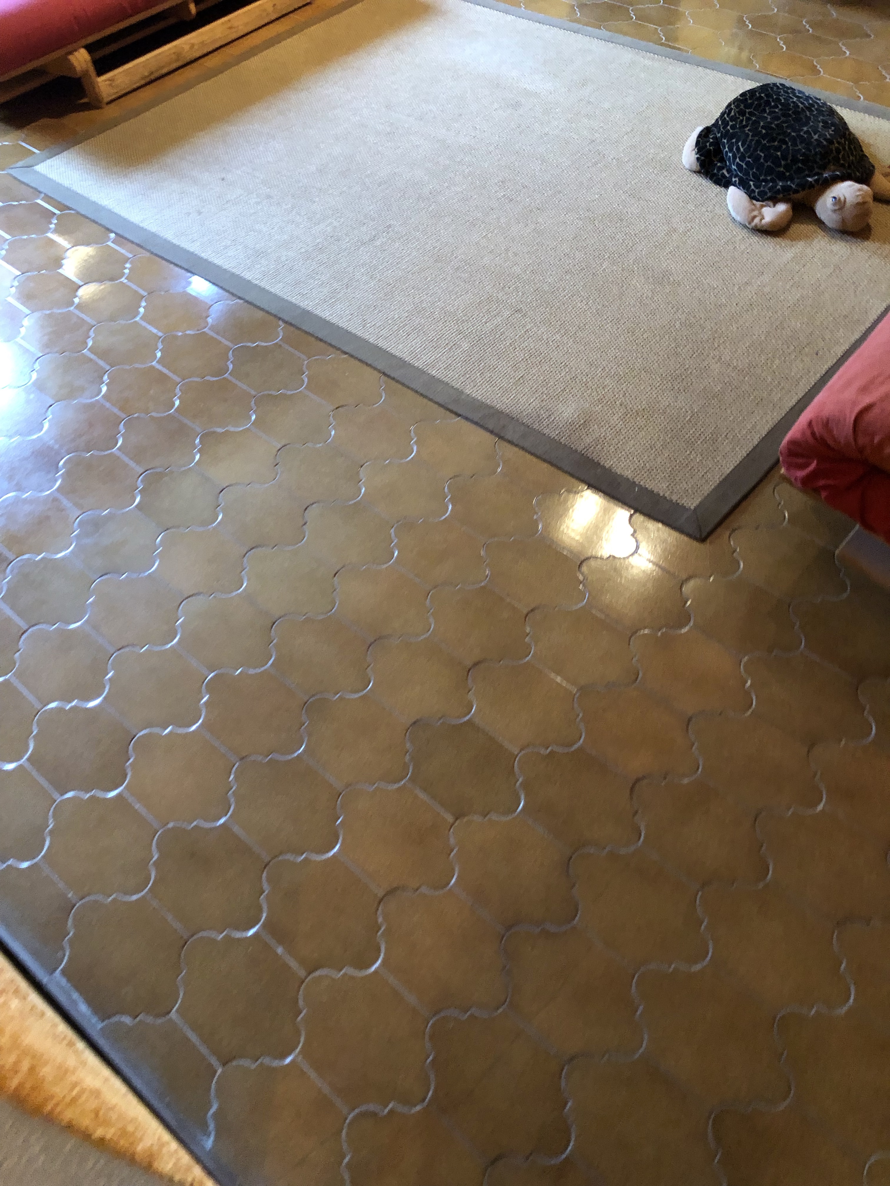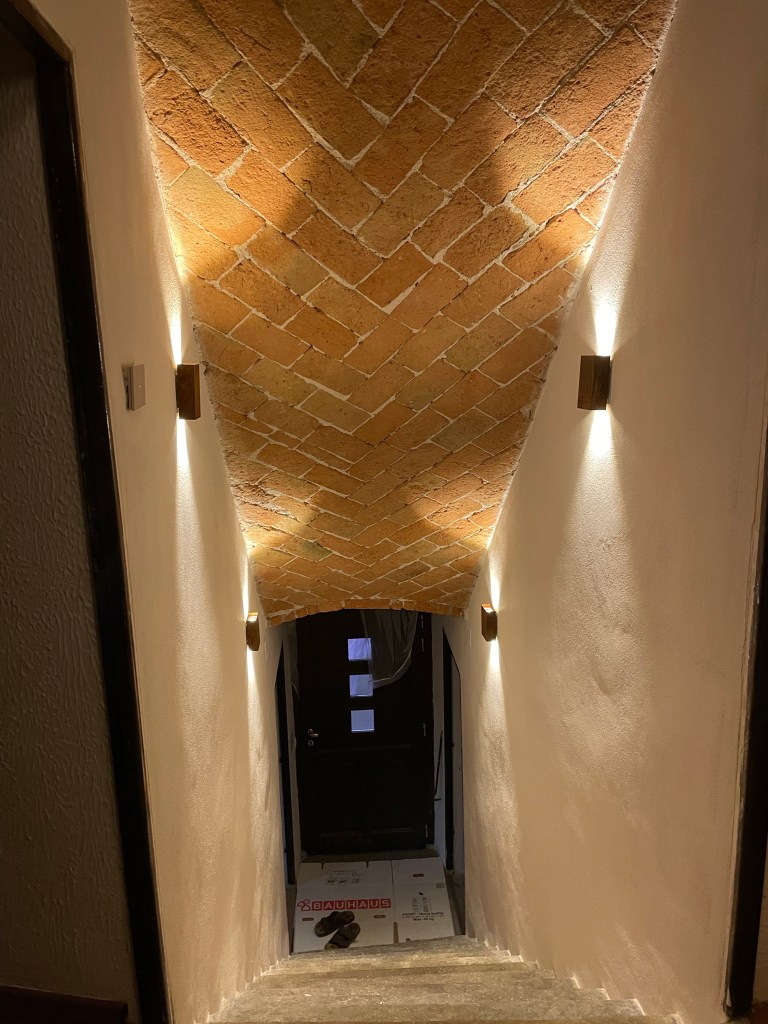 Der findes 5 forskellige slags fliser og sågar parket gulve i huset. Efterhånden som vi får istandsat rummene, skal der lægges nye terracotta gulve overalt på 1. salen. Hvis Jeanette får sin vilje, skal der lægges et mønstret gulv i badeværelserne og i noget af køkkenet. Stueplan tænker vi, skal have betongulv, da vi har de buede murstenslofter. Fliser kunne måske forvirre øjet for meget… nu må vi se, hvad vi ender med, når vi først kommer igang
