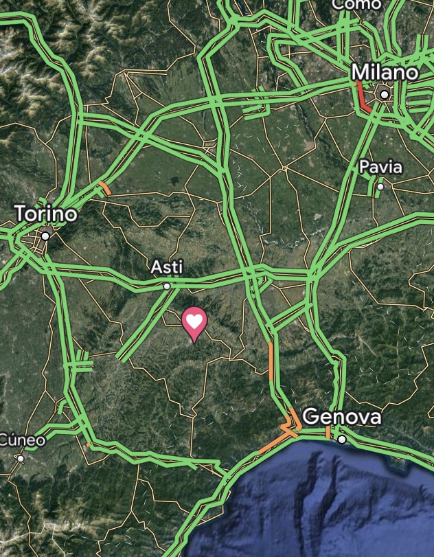 Huset ligger i en lille kommune, der hedder Calamandrana. Den tætteste by med shopping af stort set det meste, er Canelli. Canelli ligger 4 km fra huset.