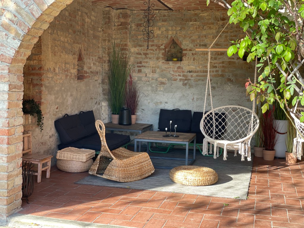 Laden 1. sal kan kun nåes via en lille jernstige foran huset. Jeanette drømmer om, at få åbnet op til bagsiden af laden, så man kan sidde her og nyde aftensolen. Der skal sættes dobbeltdør i det ene værelse, der vil få direkte adgang til terrassen. Den drøm er nu ved at blive til virkelighed.