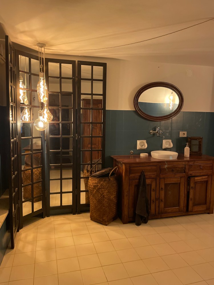 I stueplan i en del af den gamle lade, finder vi et nyere badeværelse. Det var helt charme forladt, og ikke godkendt, men fungerer især imens vi renoverer. Det har en dejlig str. Vi overvejer at udvide det en smule mere, men vi må lige se hvor omfattende det er.