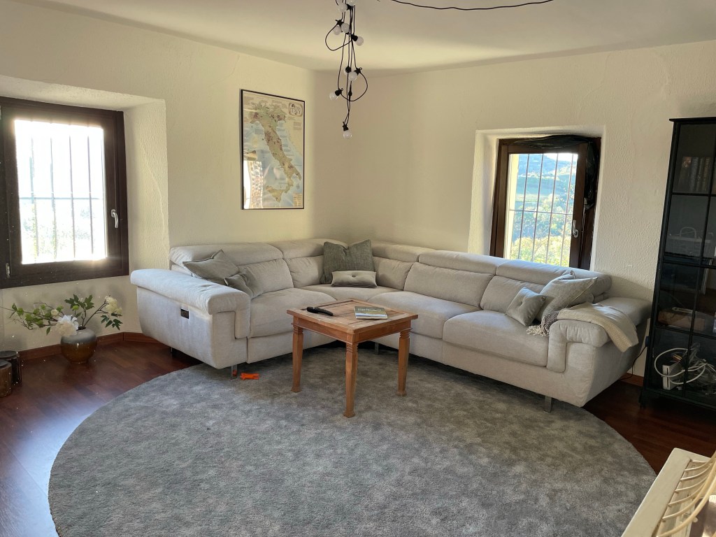 Vi har købt en stor italiensk sofa, som kan laves om til seng, hvis vi skal bruge 6 soveværelser.